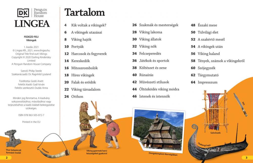 A Fedezd fel! könyv tele van érdekességekkel minden kis kíváncsi olvasó számára. Találnak benne meglepő tényeket, érdekességeket a vikingek életéről. Megtudhatja, hogyan éltek a viking gyerekek és felnőttek, miben hittek, hogyan szórakoztak, hogyan harcoltak és milyen felfedező utakra jártak. Mindezt érdekes képek és térképek egészítik ki. A könyv tartalmaz egy témához illő játékot is. Elő a figurákkal és a kockával, máris mehet a játszma! Fedezzék fel a vikingek lenyűgöző világát!