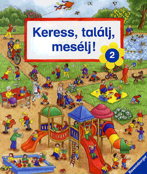 A második Keress, találj, mesélj! képeskönyv oldalai rengeteg keresni-, találni- és mesélnivalót rejtenek. Piac, óvoda, építkezés, orvosi rendelő, strand, állatkert, bevásárlóközpont, vasútállomás – mind-mind izgalmas, felfedezésre váró helyek az apróságok számára.