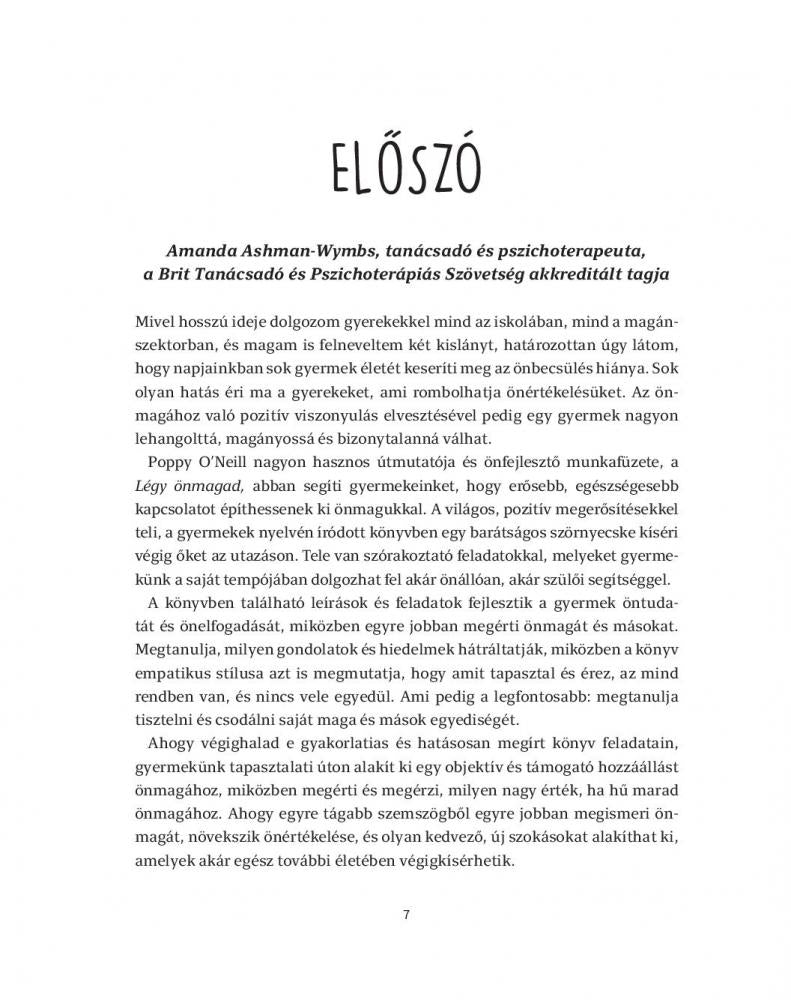 Az önmagunkkal való pozitív kapcsolat elvesztése elhagyatottságot, önbizalomvesztést és gyakran depressziót is okozhat. A Légy önmagad című könyv egy nagyon is szükséges útmutatást nyújt arra, miként segítsünk gyermekeinknek felfedezni erősségeiket, hogy magabiztosak legyenek és valódi énjük igazán ragyoghasson! A könyv 7-11 éves gyermekek számára készült.
