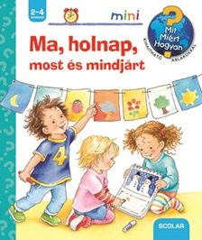 A Ravensburger gyermekkönyvsorozatának e kötete az idő fogalmával ismerteti meg az apróságokat. A gyerekek számára ismerős élethelyzeteket bemutatva érzékelteti, hogy a különböző időtartamot kifejező szavak mit is jelentenek. A kisgyermekek megtudhatják, hogy milyen napszakok, napok, hónapok és évszakok váltják egymást, példákat láthatnak arra, mi a különbség a most és a mindjárt között, és milyen tevékenységek mennek gyorsan, mi tart sokáig. Ismerjük meg a világot, lépésről lépésre – együ...