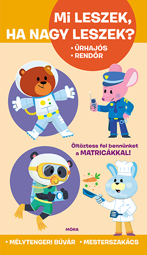 Tudj meg érdekességeket az űrhajósok, az állatorvosok, a mesterszakácsok, a rendőrök, a mélytengeri búvárok, az énekesek, a tanítók hivatásáról, és öltöztesd fel matricákkal a kötetben található nyuszi- és kutyafigurát aszerint, hogy épp milyen foglalkozásról olvasol.