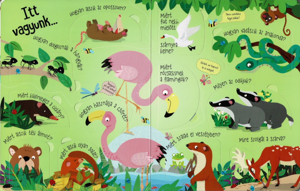 Ez a könyv nem csupán egy egyszerű állatokról szóló olvasmány, hanem egy interaktív felfedező kaland, amely a természet csodáit hozza közel a gyerekekhez. A kérdés-válasz formátum segít megérteni az állatvilág érdekességeit, miközben a szórakoztató illusztrációk és a kihajtható ablakok fokozzák a kíváncsiságot.