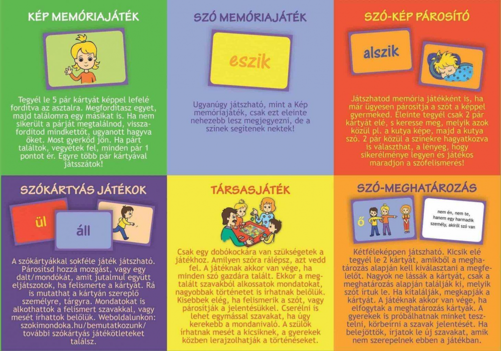 A SzóKiMondóka játékmappa remek bevezető játék a szavak világába. A képes szókártyákkal rengeteg játék játszható, és 6 játékleírást is mellékeltünk a mappá...